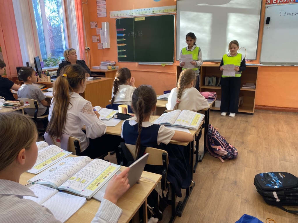 Отряд Юных Инспекторов Дорожного Движения «Веселый перекресток» вышел с просветительской акцией к ученикам начальной школы 17.11.2025 года. Юные инспектора движения школы рассказали о правилах дорожного движения в зимний период, об опасностях, подстерегающих детей на дорогах в темное время суток. Обратили внимание на важность светоотражающих элементов на верхней одежде.