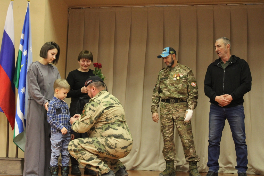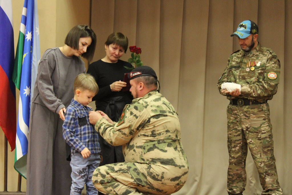 Медаль «За отвагу» вручили Бабкиной Людмиле Анатольевне, матери Героя Российской Федерации Бабкина Максима. «Орден Мужества» посмертно вручили Якушевой Марине Рубиновне, Якушеву Павлу Анатольевичу, Якушевой Анастасия Павловне и Якушеву Савелию Андреевичу, матери, отцу, супруге и сыну Героя Российской Федерации Якушева Андрея. «Орден Мужества» вручили Пинигиной Татьяне Валерьевне и Несвицкому Валерию Александровичу, супруге и сыну Героя Российской Федерации Несвицкого Александра. Медаль «За храбрость» II степени вручили Ковалевой Наталье Владимировне, супруге Героя Российской Федерации Ковалева Сергея.