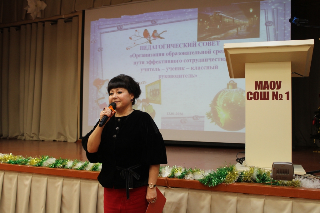 12.01.2026 года в МАОУ СОШ № 1 прошел педагогический совет на тему «Организация образовательной среды: пути эффективного сотрудничества учитель – ученик – классный руководитель».