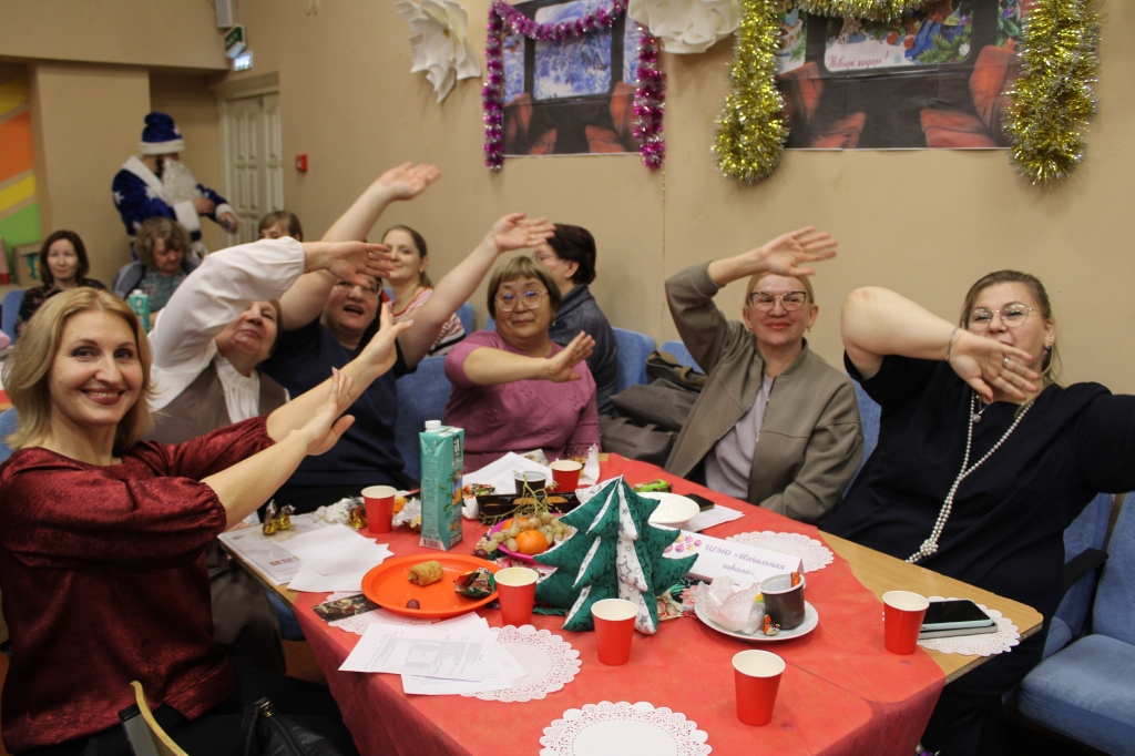 Когда поезд прибыл на последнюю станцию исполнения желаний, на сцену вышла Дюпина М.В., педагог-психолог. Она провела тренинг для коллег, чтобы войти в Новый год без зла и обид, открыться для всего хорошего и избавиться от негатива. Педагогам было предложено создать гирлянду благодарностей 2025 году и написать пожелания коллегам от каждого методического объединения, затем этими гирляндами и шарами были украшены новогодние елочки, сделанные руками учителя технологии Мхитаряна А.З.